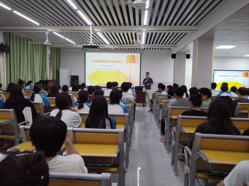 随着高考临近,高三学生的压力变得更大。为了缓解高三学生的考前压力,于4月15日学校邀请市妇幼保健院临床心理科的两位医生,分别给我们高三年级学生上了一节考前心理解压课,给全