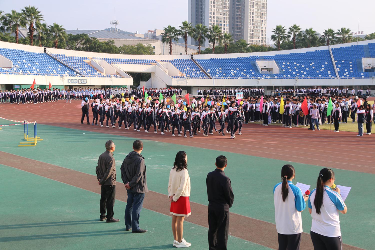 伴随着激昂的《运动员进行曲》,彩旗方阵及各班代表队依次入场,步伐铿锵,口号嘹亮,点燃全场激情。升旗仪式结束后,副校长何永新致开幕词,希望同学们发挥体育精神,争取好成绩,为班级争光。随后,校党支部书记、德育副校长苏柏春宣布运动会开幕。