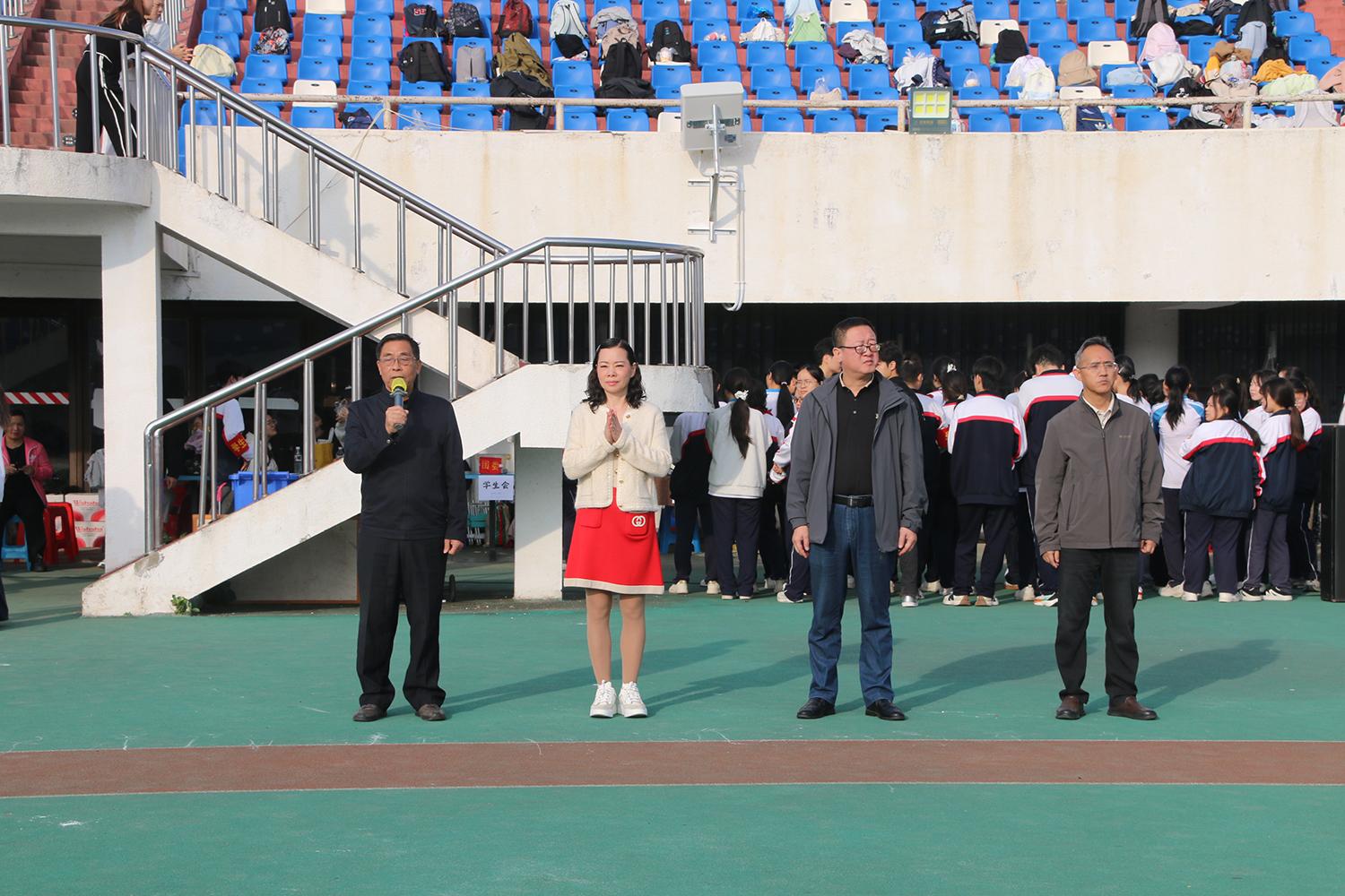 运动会于10月29日早上8:00开始,学校主要领导出席了开幕式。