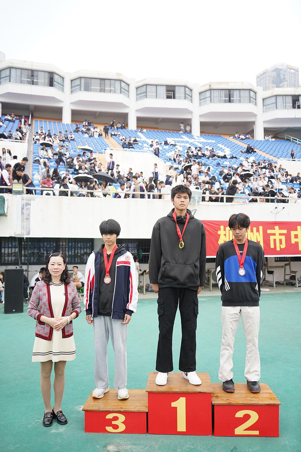 本次田径运动会取得了可喜的成绩,其中五项比赛分别刷新了我校新纪录:男子100米由2301班郭楚晧以11″04的成绩打破原11″38的记录;男子200米由2305班周言程以23″07的成绩打破原23″42的记录;男子400米由2301班郭楚晧以51″38的成绩打破原53″55的记录;男子800米由2301班周言程以2′07″49打破2′13秒52的记录;男子1500米由2303班覃维哲以4′44″12的成绩大幅打破原4′52″00的记录。