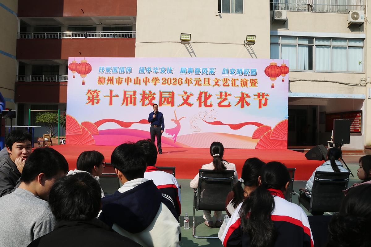 1月13日下午,我校第十届校园文化艺术节在本校操场举行。天气晴好,同学们按划定的区域有序入场就座。14:30我校第十届校园文化艺术节暨2026年元旦文艺汇演正式开始。