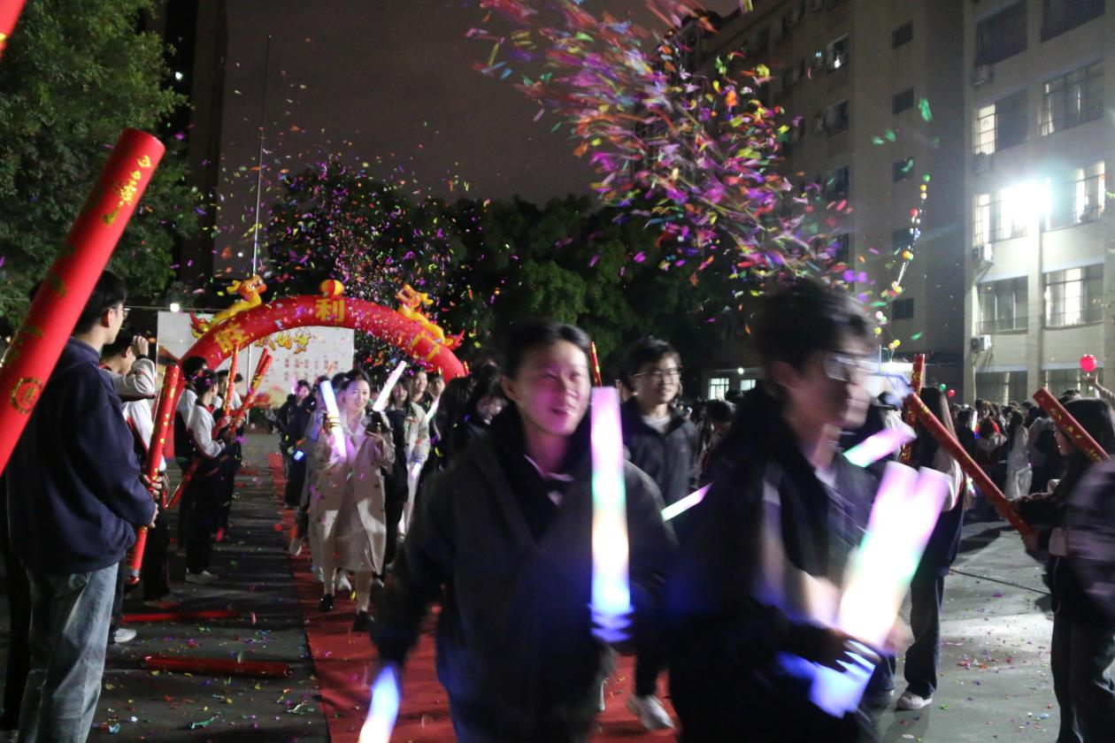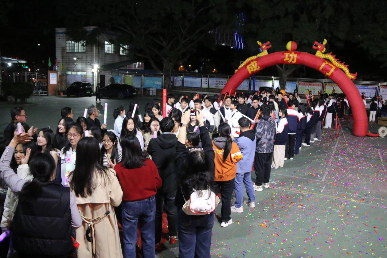 高三同学们在老师们的欢呼和祝福下走过“成功门”